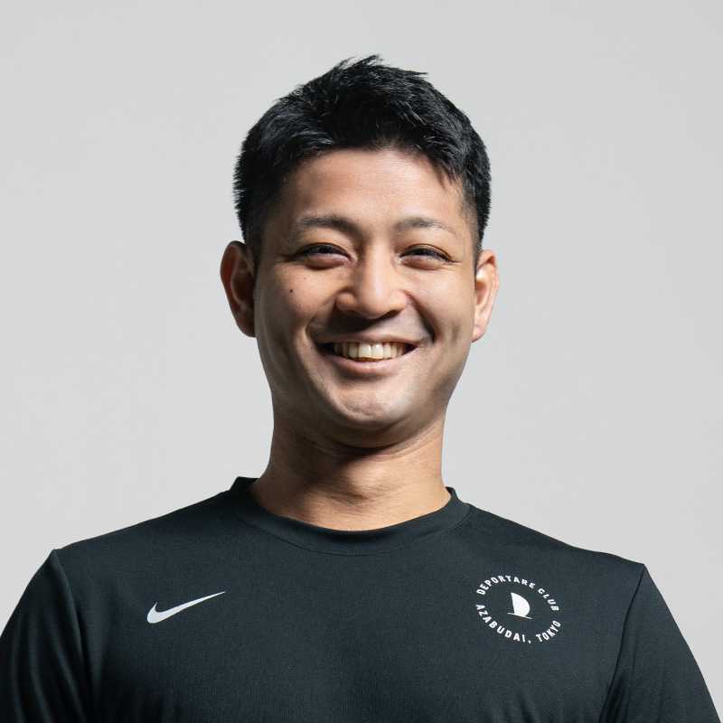 日本体育大学柏高校、明海大学卒業。大学時代は憧れていたライブハウスでアルバイトをする毎日で、卒業後も音楽業界やアパレル業界を経験し好きなことを仕事にしてきましたが、不規則な生活だった為、趣味であるトレーニングをする時間がないと気づき、「トレーニングができる環境に身を置いてしまえばいい」と考え始めてデポレターレクラブのフロントアルバイトとして応募。面接の日に「トレーナーをやらないか?」と熱烈なアプローチを受け、興味のあったトレーナーとしての研修が始まる。