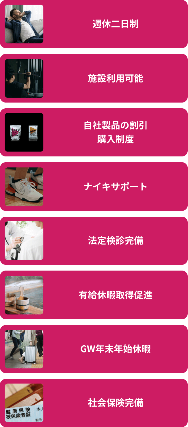 国家資格(柔道整復師、鍼灸師、管理栄養士など)や、民間資格(NSCA、NASMなど)をお持ちの方は歓迎いたしますが、必須ではありません。